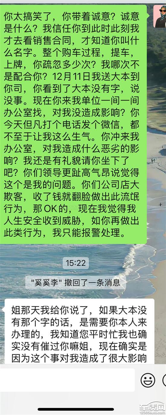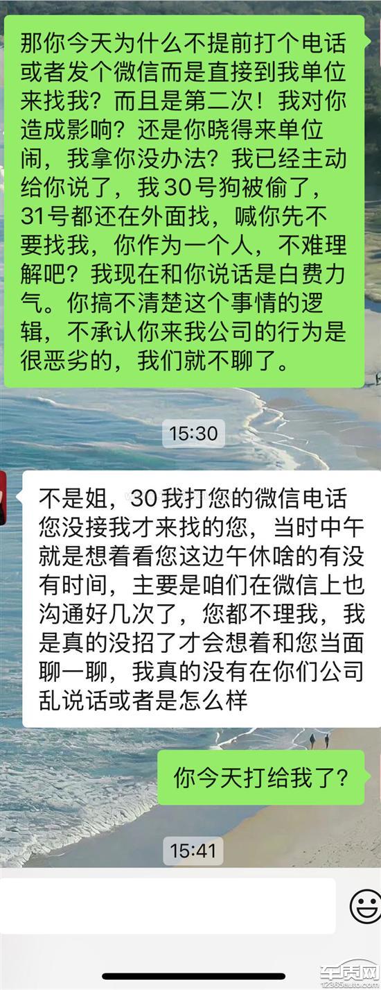 本人2024年11月23日提车,11月27日到车管所上牌,但未在大本上登记贷款车辆。12月11日将大本交至贵州4S店,对方称没问题。12月30日要求我配合到车管所登记,在我告知对方我家中有急事,没有上班,两天没时间的情况下,吉利银河销售在未通知我的前提下,分别于12月31日及2025年1月2日直接到我单位,找到我办公室。且我与对方领导打电话沟通,对方领导称觉得没问题,就是应该来我单位找我。这对我造成了非常大的影响!也影响到我司工作秩序!