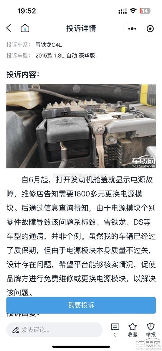 车辆频繁出现电路故障,到4S店检测为电源管理模块故障。经查询,多个平台大量车主投诉反馈C4L系列车GPA主板存在质量问题,为共性问题非单一案例,存在安全隐患,严重时影响驾乘人员安全,要求厂商就C4L电源管理模块问题进行召回维修,并对相关配件进行质量改进!