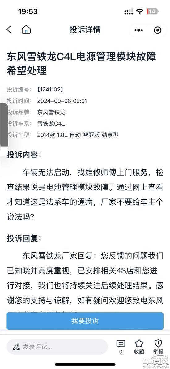 东风雪铁龙厂家回复:您反馈的问题我们已知晓并高度重视,已安排相关4S店和您进行对接,我们也将持续关注后续处理结果。感谢您的支持与谅解,如有疑问欢迎您致电东风雪铁龙客户服务热线:400-886-6688。