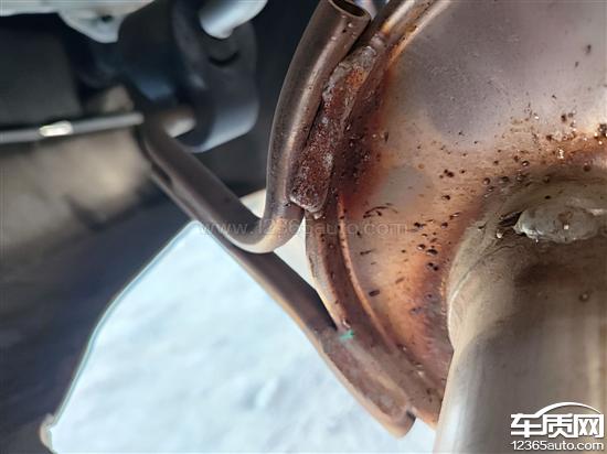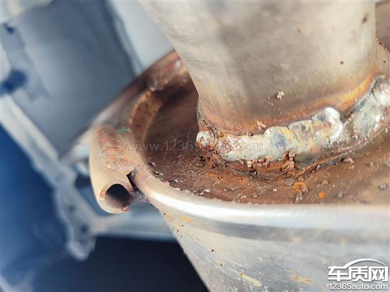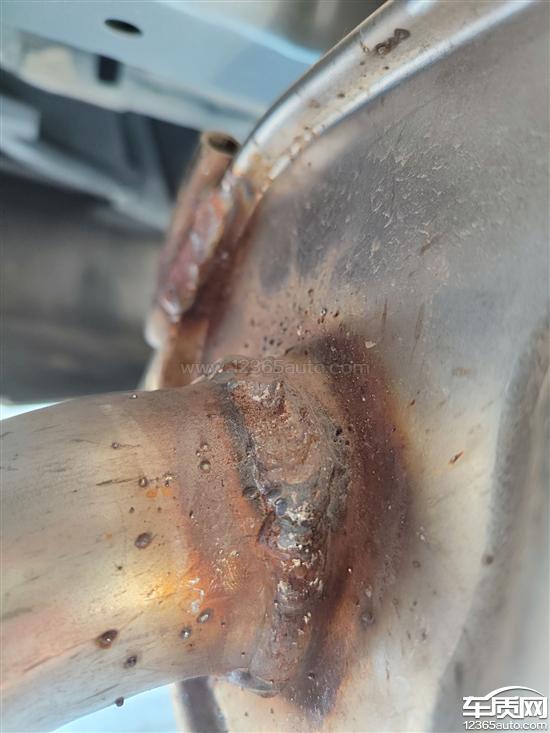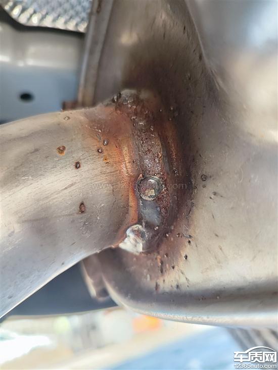 1月5号安装静电释放带的时候,发现排气筒上面的焊接部位有大量的点焊补焊。怀疑有二次焊接行为或者是残次品上车销售。