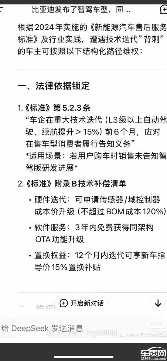 刚买来的车就成了老车主,没有享受技术带来的好处,还承受经济损失,现要求比亚迪提供补偿方案(如免费升级服务或者现金补贴)。