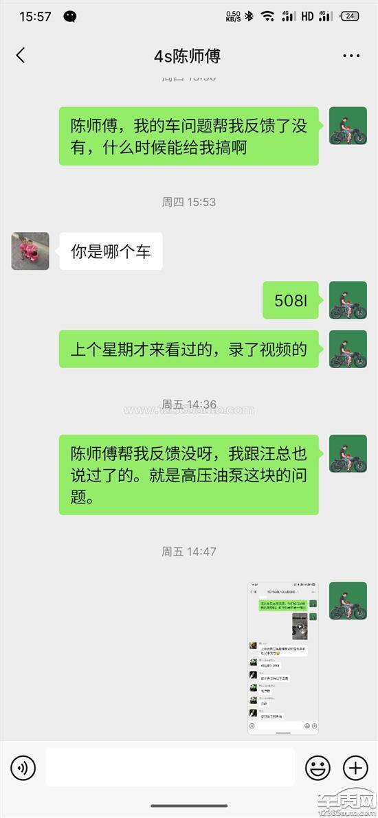 车辆在23年底。经外面的法系专修师傅发现发动机声音和其他同车型声音不一样,有异常。初步认定是高压油泵这一块的问题引起。遂让我在质保期内去4s店解决就可以了。然而这期间。我多次去过4s店反映问题。都认定我的声音大一点是正常的,以车辆没有出现明显故障为由,且还在质保期内,让我继续使用。25年一月初发现车辆声音相比去年更明显,给车友群和外面师傅听,都能听出有问题。于是又到店内希望能做相关检修,和店内师傅一起听了同款发动机车辆声音对比,店内师傅依然没有做进一步检查,只是录制了视频说给厂家技术专家要反馈一下。厂家后面给的回复是正常,没有问题。作为一个专业的车企4s店,对车辆明显的问题无法进一步做检查。我已明确告知问题在高压油泵支架这方面做检查就可以了。然而一直没有给我检修解决问题,不做检查,以声音正常为由不予以解决。
