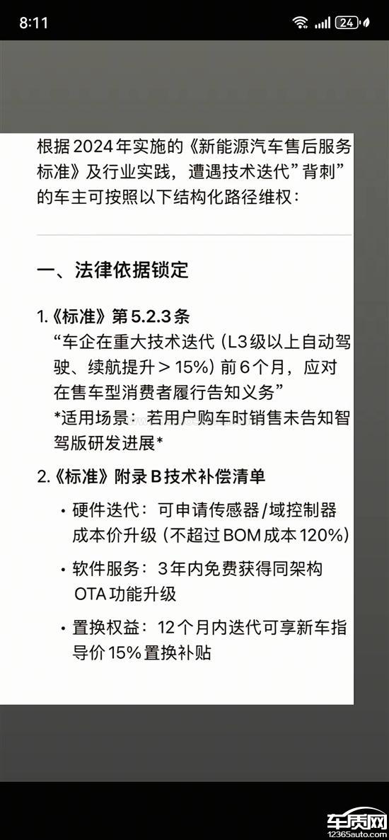 2024年11月29日购买比亚迪汉dmi尊荣125km版,花费171800,2025年2月比亚迪推出同款车型升级版本!增加天使之眼等!比亚迪厂商宣传该品牌是国内首批L3级别商家,根据2024年实施的《新能源汽车售后服务标准》中第5.2.3条“车企在重大技术迭代(包括但不仅限于L3级以上自动驾驶、续航提升>15%)前6个月,应对在售车型范围内消费者履行告知义务”。销售在购车时并没有提及智能驾驶研发进度,车辆更新情况!1、侵犯消费者知情权,销售人员并未告知短期内降价增配,使我在信息不对称下做出购买决策!2、损害公平交易权,从发行到停产不到一年时间,隐瞒消费者实情,迅速推出新款增配降价,导致我的车辆迅速贬值,二手车残值大幅降低,给我造成了经济损失!诉求:比亚迪免费升级配置,为我的车辆免费升级与新款相同配置,如“天神之眼”智能驾驶系统,哨兵模式等!官方公开致歉并制定老车主补偿方案。