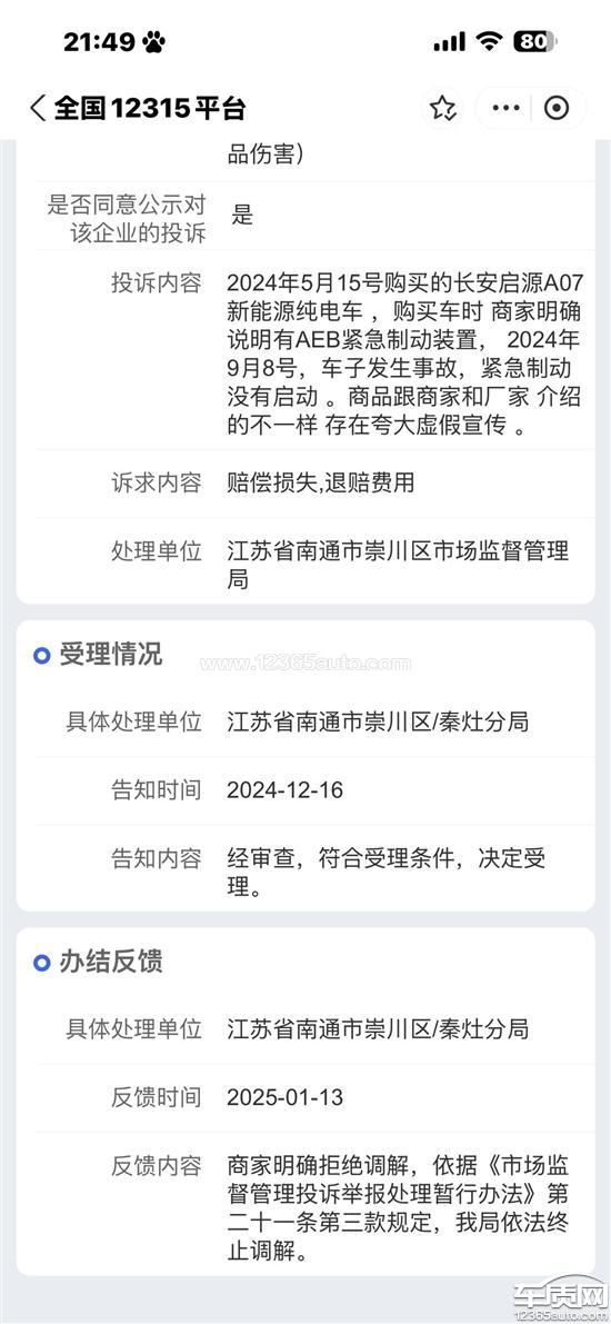 南通市长安启源飞海店售出的该车辆在行驶过程中,前方遇到行人,自动刹车AEB功能无效。长安汽车宣传的安全是最大的高级,就是欺骗消费者。