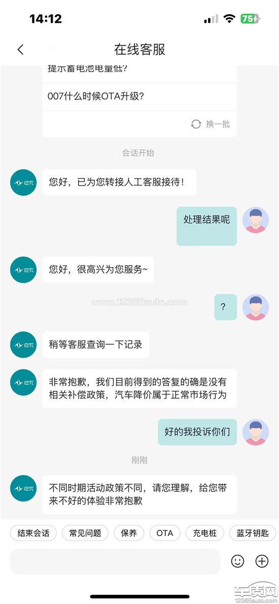 东风乘用车厂家回复:客户反馈的问题厂家已知晓并高度重视,已安排相关4S店和客户进行对接,正在积极的沟通处理中。厂家也将持续关注后续处理结果,感谢客户的支持与谅解。东风Eπ客户服务中心:4006000666/8008840000