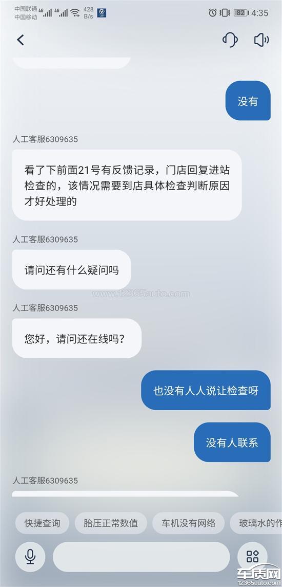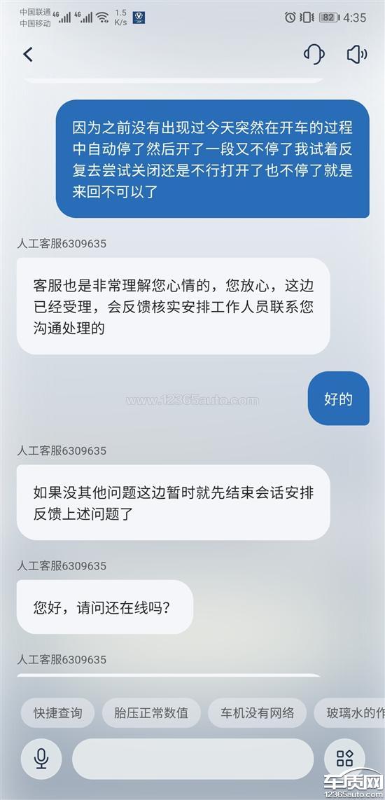 2025年3月21日通过引力域APP客服页面反馈怠速启停装置失灵的问题。客服看似挺热情,说给反应。然后至此。没有任何人联系,本人3月24日收到短信说,已处理完毕,然后又通过引力域APP的客服页面反馈说。说本人车辆去检测过了,其实根本没有,完全胡编乱造莫须有。通过这个问题,可以看出长安汽车对销售出去的汽车完全置之不理,这不就是一言堂,形式主义,官僚主义,擅自做主,胡编乱造。厂家自己把问题弱小化,来麻痹质量问题,不作为,把客户当足球踢来踢去,客户根本不知道。