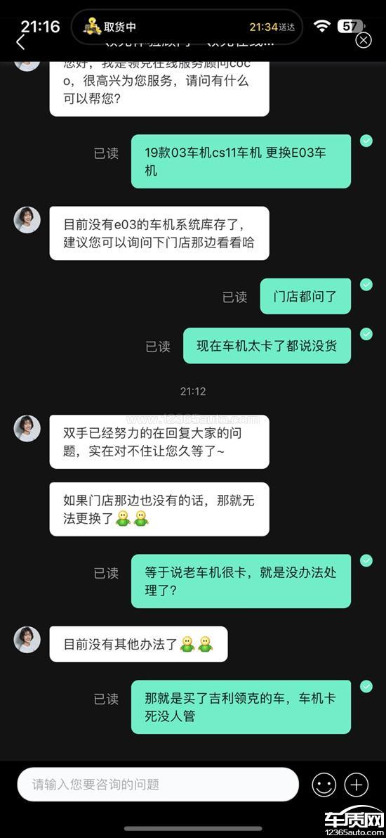 车机非常卡现在不让换芯片,每次开机都要等好几分钟,里面的界面非常卡!哪怕更换原来的新车机还是卡换汤不换药!领克客服回复车机卡,找4s店,门店没办法那就没办法。