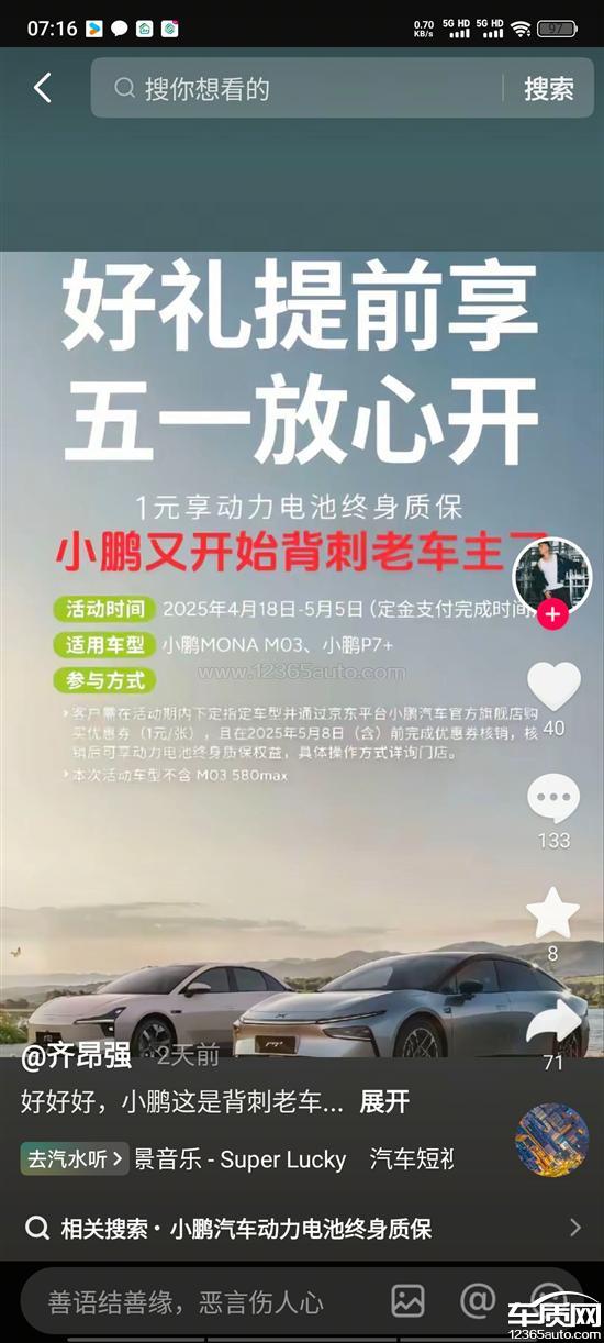 2月11日提车,距离提车不到三个月,销售方政策就出五一特惠免费电池终身权益,老车主购买则需要自费3999,抢劫呢!强烈要求补偿老车主电池终身权益!
