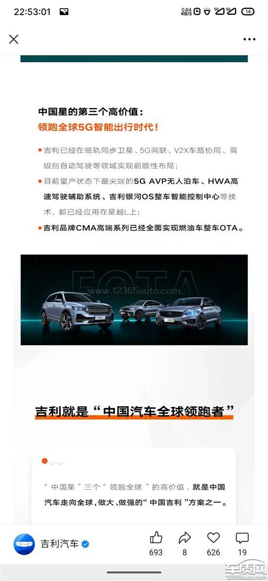 吉利汽车官方公众号自己宣传的21款星越L搭载5G网络和搭载5G-AVP1km无人泊车系统,现实是到现在也没有实现,就是在画大饼。