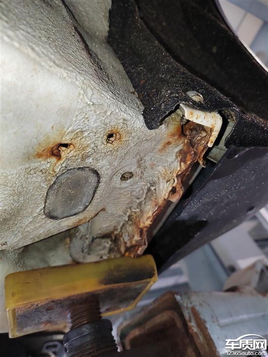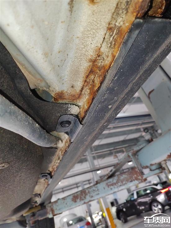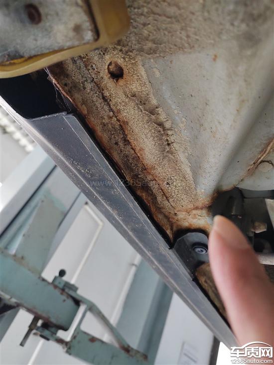 举升车辆检查发现两侧底坎大量锈蚀,马上要锈穿了,仔细检查前梁以及后梁都有锈蚀痕迹,要求解决。