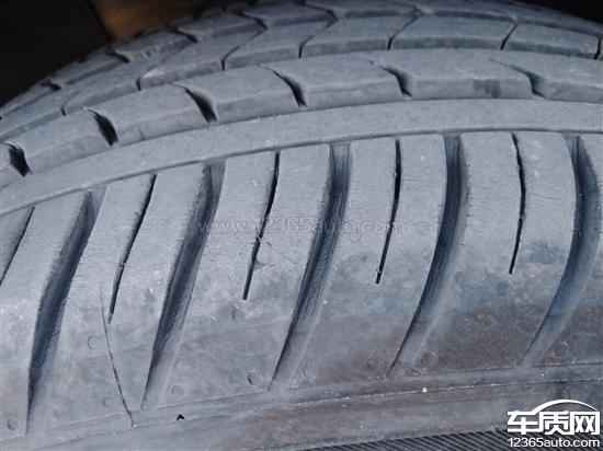买车14个月,里程5100公里,两前轮胎出现不同程度的裂纹,严重影响驾驶人员的安全。