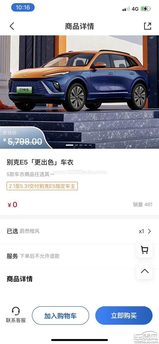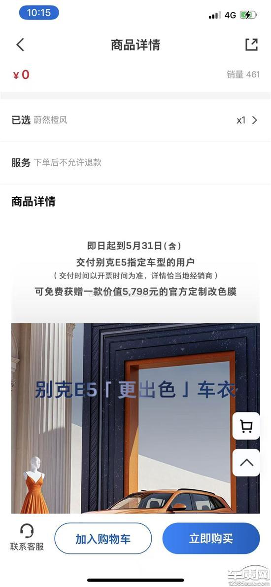 我是开票日期2025年4月18日购车,别克商城里面有0元购买别克E5车衣,商品详情页显示2025年2月1日到5月31之间的别克E5车主可以0元购买,但是我无法下单,客服来回推脱,不给解决问题。