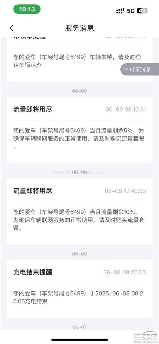 2025.6.9我发现车机没有流量,导致车机功能无法正常使用。车机流量一共为10个G,后台查询显示6月1号和6月2号已经使用了10个G,正常来说6月2号之后车机就肯定没有流量了,结果车机系统上显示6月9号没有流量,但是截至6月8号,后台数据显示流量已经使用了26.38G。目前车机系统语音召唤功能不行,导航功能也不行,就算车机连着手机的热点还是无法使用,这与承诺的基础流量免费大相径庭。6月9号我发现问题后电话联系厂家,厂家回答无法处理,询问嘉兴经销商店也没有结果。另外,调节音乐音量的快捷键也不行了。