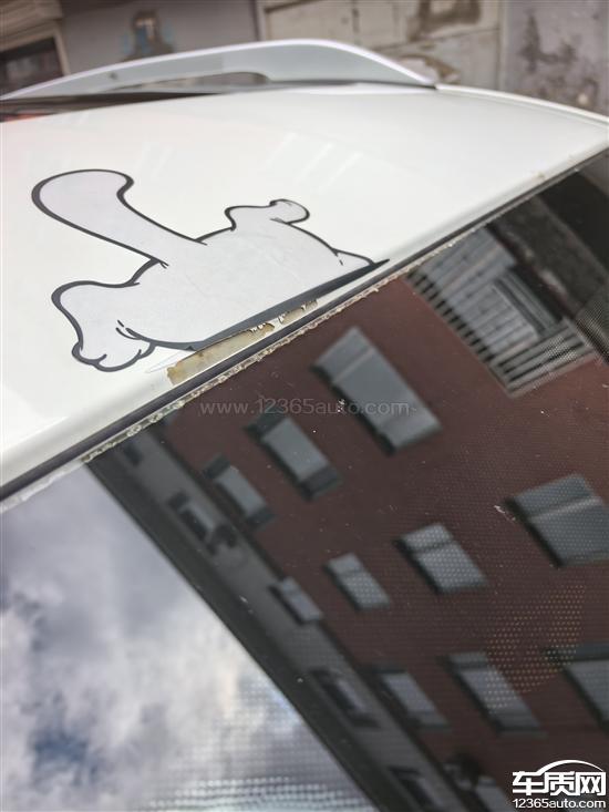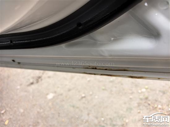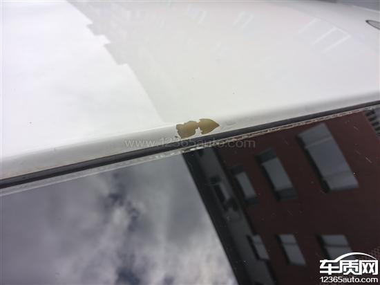 车顶挡风玻璃上沿大面积脱漆,车右后门下沿生锈腐蚀脱漆。