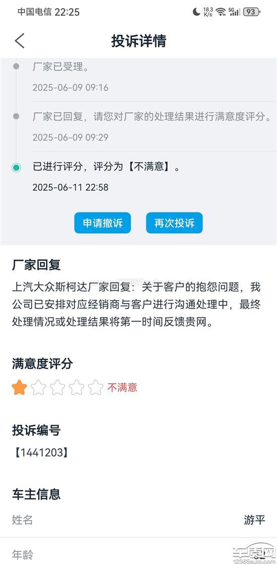 上汽大众斯柯达厂家回复:关于客户的抱怨问题,我公司已安排对应经销商与客户进行沟通处理中,最终处理情况或处理结果将第一时间反馈贵网。