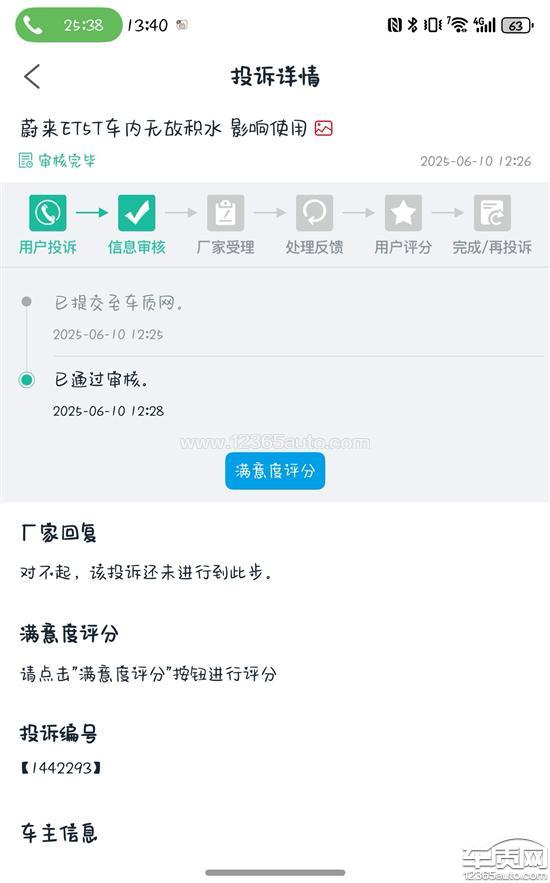 蔚来ET5车内多次漏水 处理三次未解决。像海浪声,声音很大。