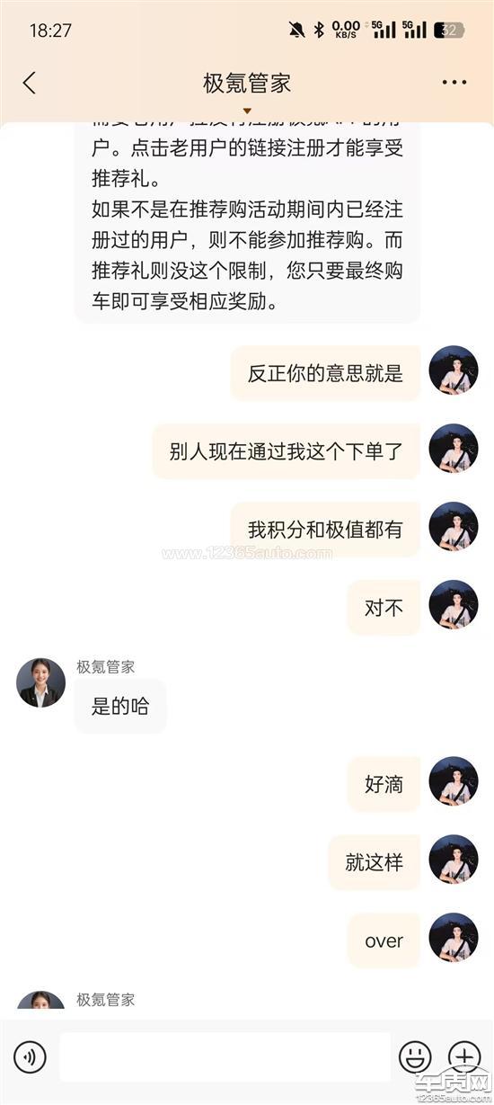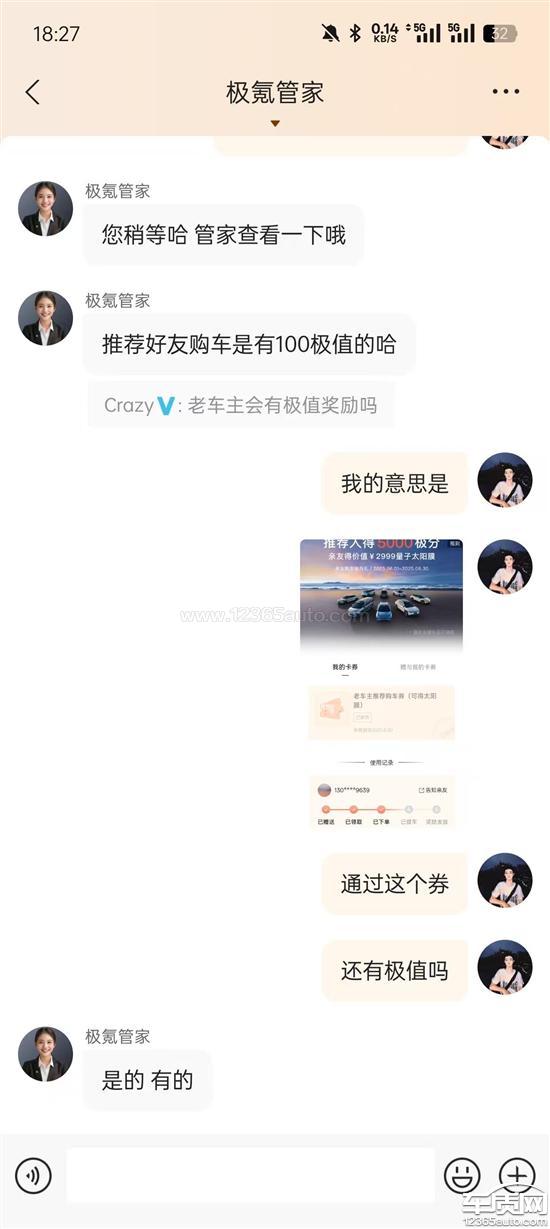 极氪一直有推荐购车赠送极值的活动,本人已推荐3辆并获得300极值。本月极氪新出活动:老车主推荐购车,新车主获得车膜+老车主获得5000极分。询问客服获得答复说会获得100极值,结果提车后只收到极分,未获得极值。