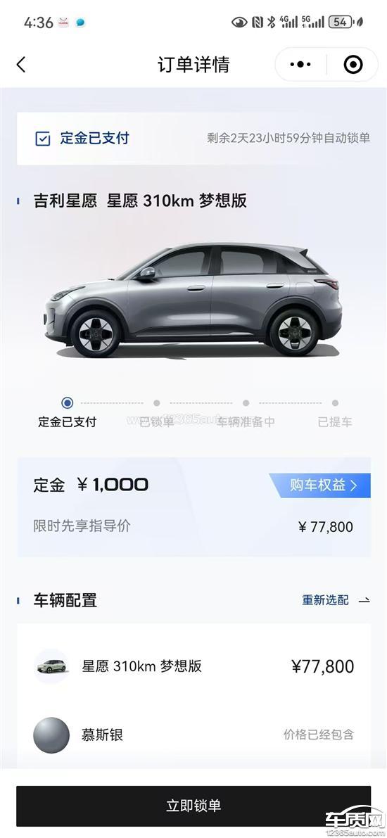 2024年11月30日,在吉利几何店在吉利APP上订购星愿310梦想版,现在无法交车,定金也无法退回,请求申诉。