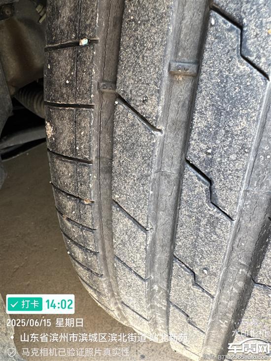 四条轮胎排水槽均出现裂纹,未超出韩泰厂家质保期限,4s店反馈说韩泰厂家因超出质保为由不予更换,仅为口头回复,并未出具鉴定报告和说明。