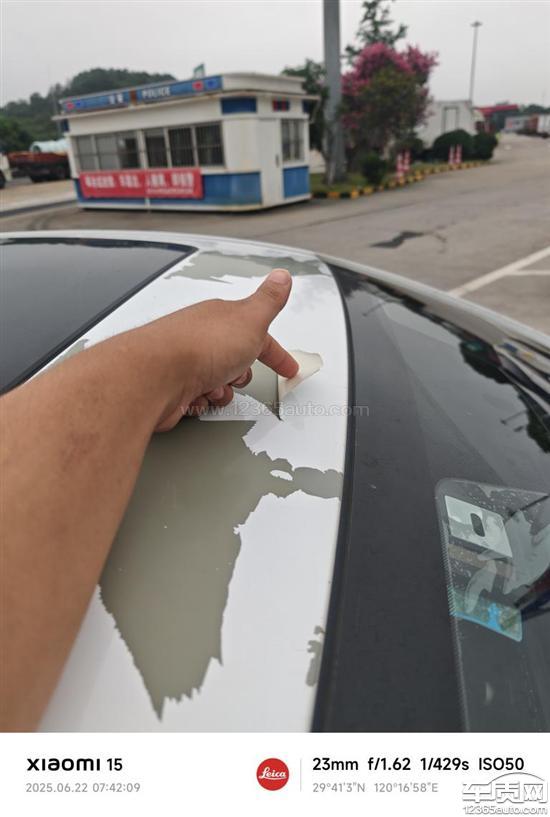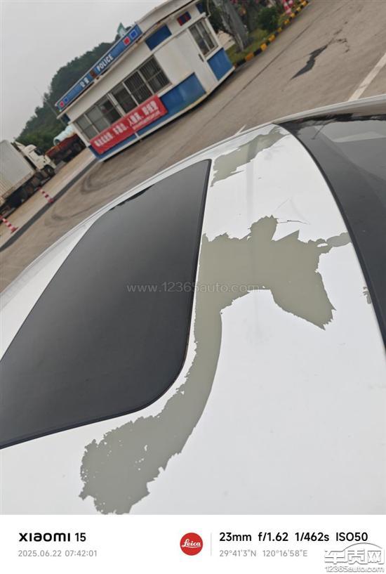 车顶大面积出现脱漆,存在质量问题,要求厂家处理。