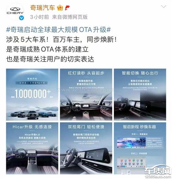 奇瑞汽车厂家回复:接到贵网反馈的客户信息后,我司非常重视:感谢您的支持。车机系统的升级是需要分步骤实施的,因车机软件安全性、可靠性要求高,车机系统要考虑到安全性和可靠性,所以升级频率不会像手机那么快。建议耐心等待。客户满意度一直是奇瑞售后的长期追求,我们也在不断提升服务,以期得到客户更多的认可。我司会继续做好对该车的跟踪服务,为客户提供周到的售后服务和保障。同时也非常感谢客户对奇瑞汽车的关注和支持,衷心祝您生活愉快,工作顺利!