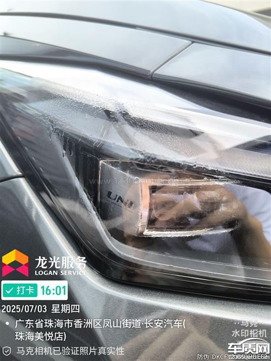 第一次大灯里有水珠,更换以后,又出现同样的情况,在三十几度的大晴天,大灯里全是水珠。
