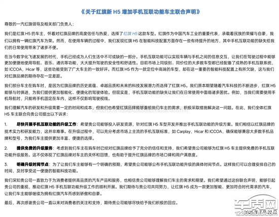 一汽红旗H5车机系统不升级 不支持互联