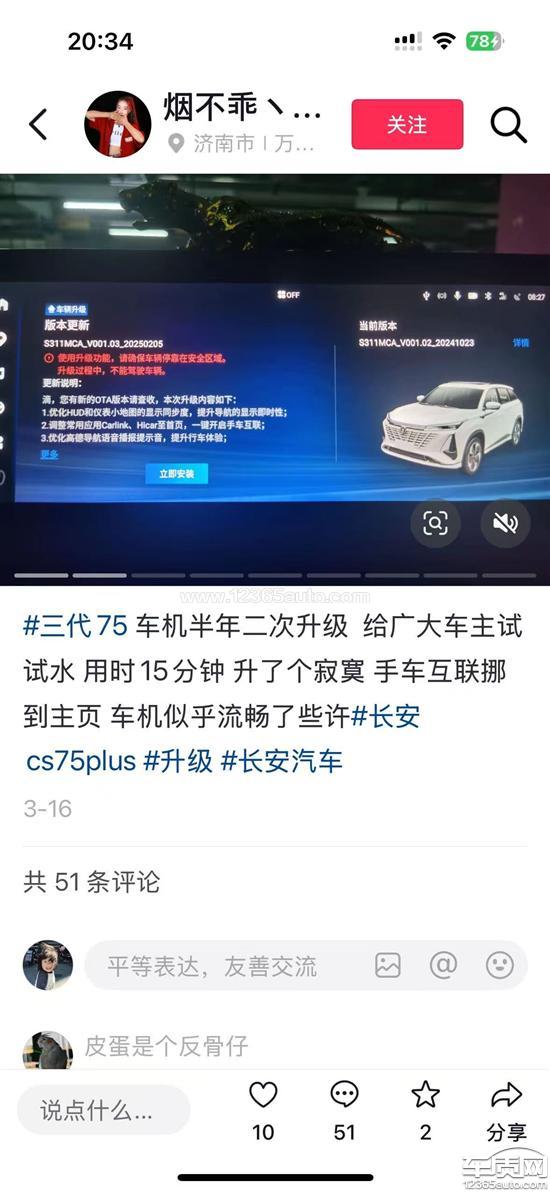 长安CS75 PLUS车机不升级,车机我的版本还是V001版本别人的都到V001.03版本了,希望厂家处理问题。