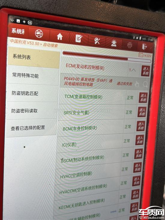 别克昂科拉GX蒸发排放故障灯亮 故障频发