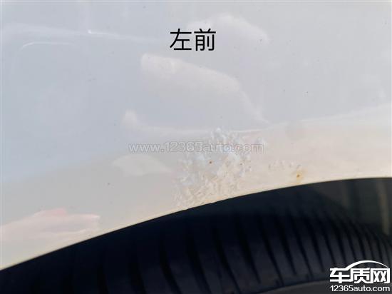 车前两侧翼子板轮眉处从内至外锈蚀严重,右前最严重沿轮眉起码20公分左右车漆鼓包翼子板内侧锈蚀严重、左前刚开始锈蚀车漆已鼓包直径三四公分左右!