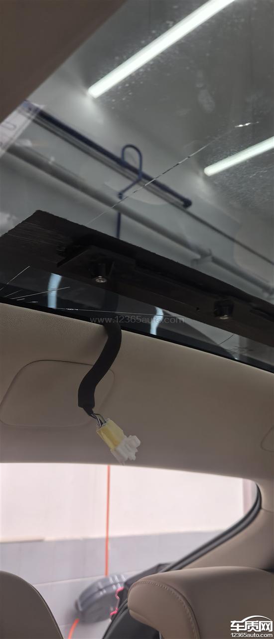 顶棚玻璃在电动遮阳帘里覆盖住接触不到的地方破损,并且车辆外部顶棚玻璃无异常,破损点无法看出外力导致,并且此问题是在安装完电动遮阳帘之后产生的,在这之前玻璃是没有问题的。破损点被电动遮阳帘完全包裹住,玻璃是从内部出现问题,外部无异常。玻璃破损点在不拆卸掉电动遮阳帘以及原车内装饰板是看不见的,包括玻璃破损点延长的线。服务中心不解决不处理。