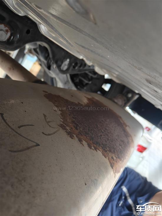 排气管消音器生锈,拆下消音器发现上面有一块被挡住的生锈严重,下面生锈的部分周围与两侧正常部分颜色有差异,两侧排气管支架铝座氧化严重,申请更换排气管消音器,消音器卡箍,消音器固定支架。