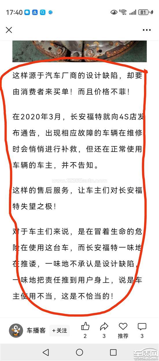 长安福特厂家回复:尊敬的客户,您好!您反馈的问题长安福特已收到,已协调德阳万兴经销商处理,我们也将密切跟进处理过程。同时,您可以拨打长安福特客户服务热线951995(在线咨询)了解处理进度,谢谢!