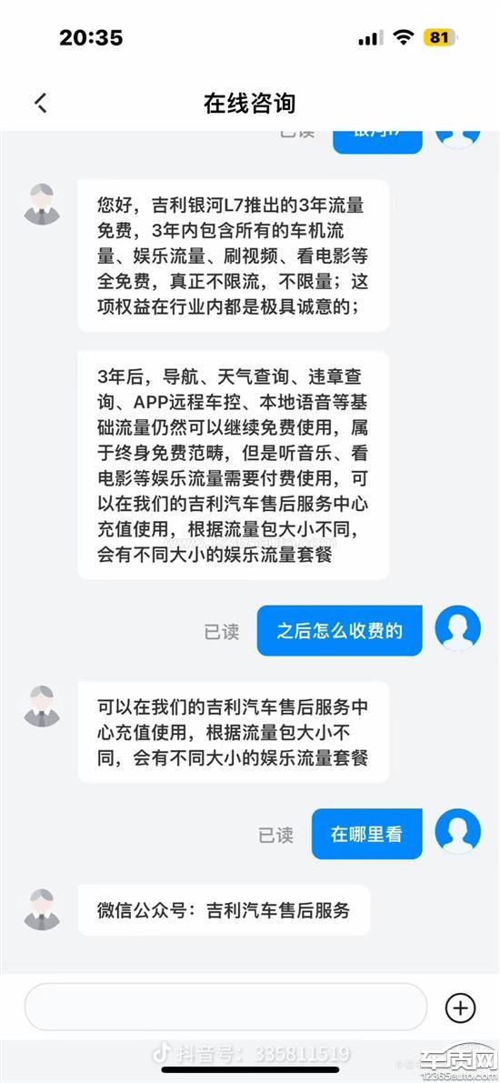 吉利汽车厂家回复:“基础流量”权益通常涵盖车辆远程控制、在线导航、语音助手、天气查询、OTA升级等功能。具体所含功能,请以您所购车型的实际配置为准。以上权益,覆盖吉利中国星及吉利银河品牌旗下所有车型。若有任何疑问,欢迎致电官方客服热线400-886-9888咨询。衷心感谢全球超1800万用户的信任与支持。我们将始终秉持“用户至上”的理念,持续努力,为每一位用户打造更智能、更绿色、更便捷的出行体验。