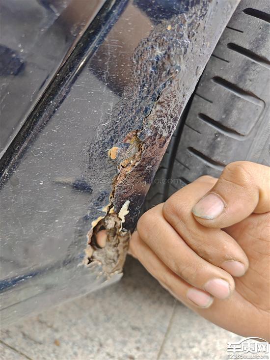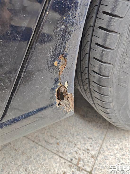 左右后翼子板同样位置生锈,期间到4s维修过一次,但是无法彻底解决此问题,现在生锈越来越严重,目前左后翼子板更为明显直接锈了一个大窟窿,给厂家打电话厂家说不管。