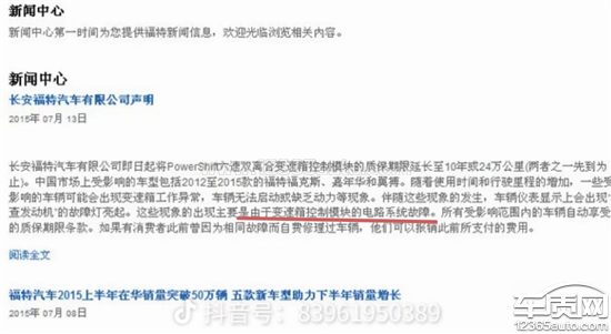 鉴于我车型是2015款三厢长安福特福克斯1.6自动舒适版(干式双离合),厂家此前上新闻出过政策,该车型变速箱控制模块的电路系统延保至10年或24万公里,我联系过厂家,厂家答应我车的变速箱故障属于变速箱控制模块的电路系统问题就兑现延保政策给我免费更换部件维修,我在新兴县本地多家有资质的机构检测结果是故障代码p0723,属变速箱控制模块问题,厂家让我对接的肇庆美轮庆福经销商不承认检测结果,让我拖车至该经销商处,我2025/8/19自费500元拖车到该经销商处,检测报告也是p0723,与我在新兴县检测结果一致,但该经销商不承认该故障属于变速箱控制模块的电路系统问题,说是三个传感器问题,要收我2415元,可是这三个传感器故障我到图书馆查阅过相关书籍、请教过多间有资质修车机构,都说这三个传感器属于变速箱控制模块的电路系统,我的诉求是,经销商执行厂家的变速箱控制模块电路系统10年或24万公里延保的政策,给我车免费更换这三个传感器。4万公里都没到,三大件之一的变速箱就出质量问题了,百年福特啊!连3万块的国产车都比不上!