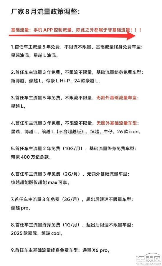 吉利汽车厂家回复:“基础流量”权益通常涵盖车辆远程控制、在线导航、语音助手、天气查询、OTA升级等功能。具体所含功能,请以您所购车型的实际配置为准。以上权益,覆盖吉利中国星及吉利银河品牌旗下所有车型。若有任何疑问,欢迎致电官方客服热线400-886-9888咨询。衷心感谢全球超1800万用户的信任与支持。我们将始终秉持“用户至上”的理念,持续努力,为每一位用户打造更智能、更绿色、更便捷的出行体验。
