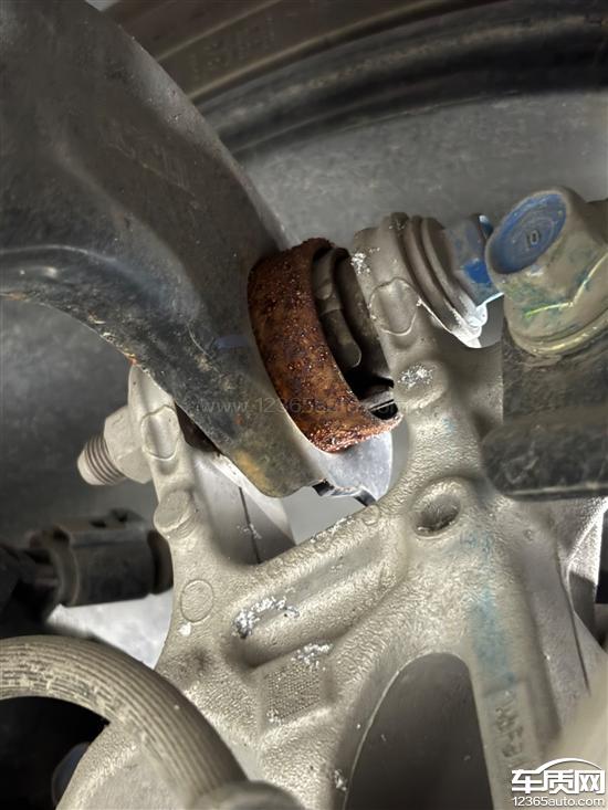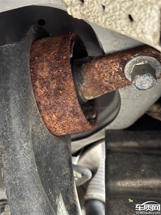 底盘上下摆臂衬套外壁锈蚀,副车架衬套外壁锈蚀,转向球笼外壁锈蚀,排气管与消声器法兰接头锈蚀!