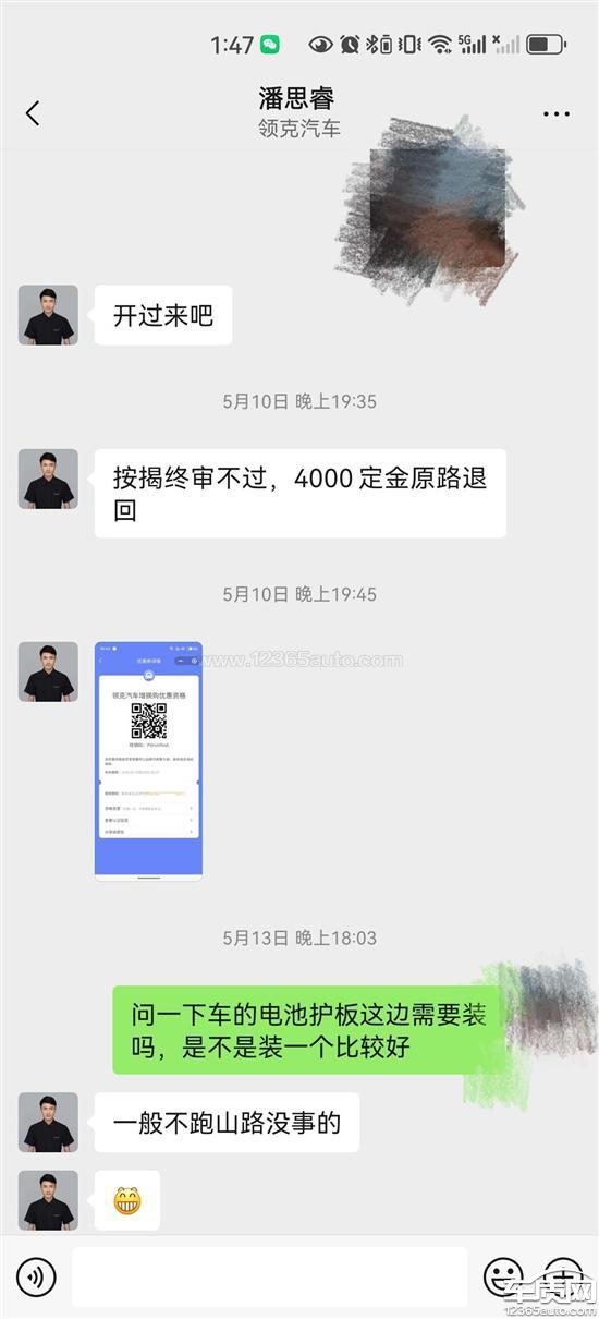购车时销售明确承诺贷款申请不通过后定金原路退回,有微信聊天记录证明,结果贷款申请不通过后厂家和4S店都不处理,也拒绝沟通,三个月打了无数电话都未能解决。