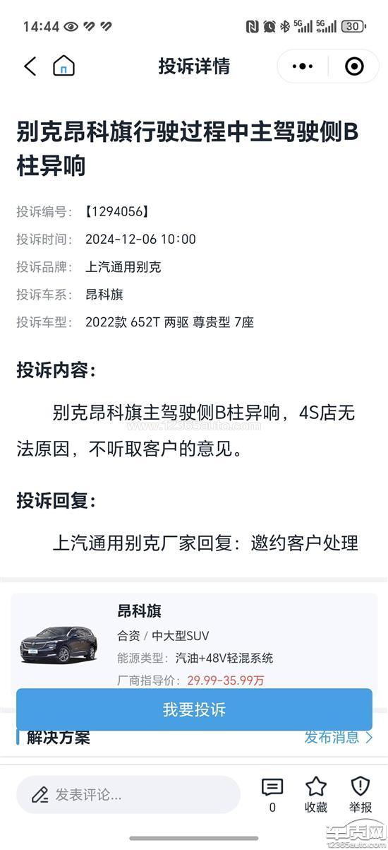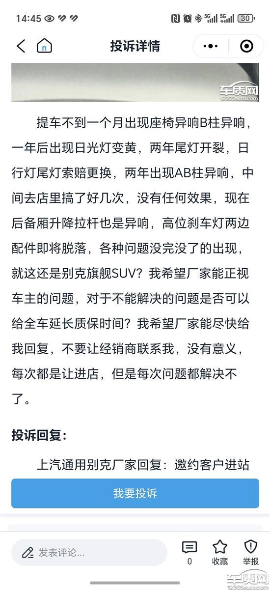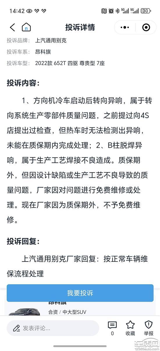 上汽通用别克厂家回复:按正常车辆维保流程处理