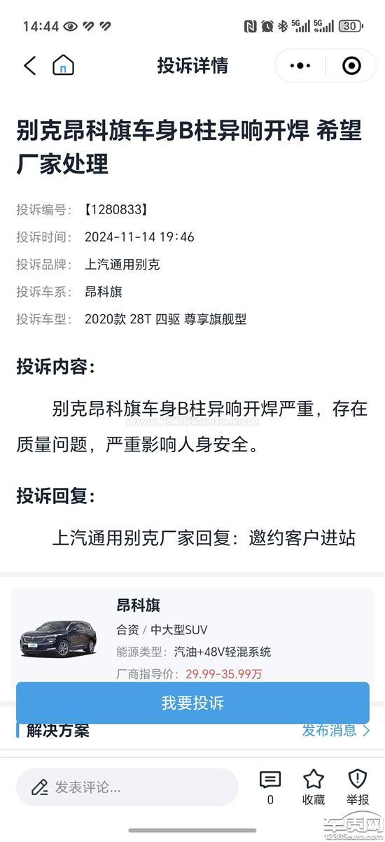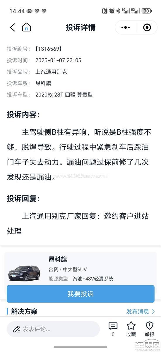 过颠簸路面B柱嘎吱嘎吱响,通过图片可以认为是昂科旗通病,B柱开焊,要求免费维修,4S店不同意。