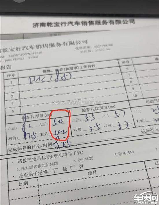 车辆行驶里程仅2万1千公里,经销商技师检测后轮刹车片厚度分别为左后5.4mm、右后4.2mm,左右两侧数据偏差较大,车辆出现严重刹车片磨偏现象,明显的异常磨损。要求厂家召回或者免费更换异常部件。