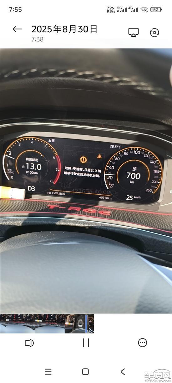 一汽大众T-ROC探歌变速箱故障灯亮,有安全隐患,开着开着,突然就不动了,安全隐患很大。