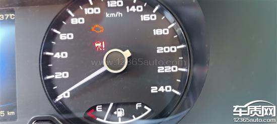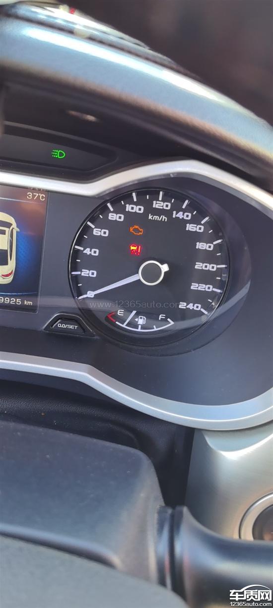 吉利帝豪GL仪表盘上发动机故障灯亮,仪表盘显示一个黄色的发动机图片。