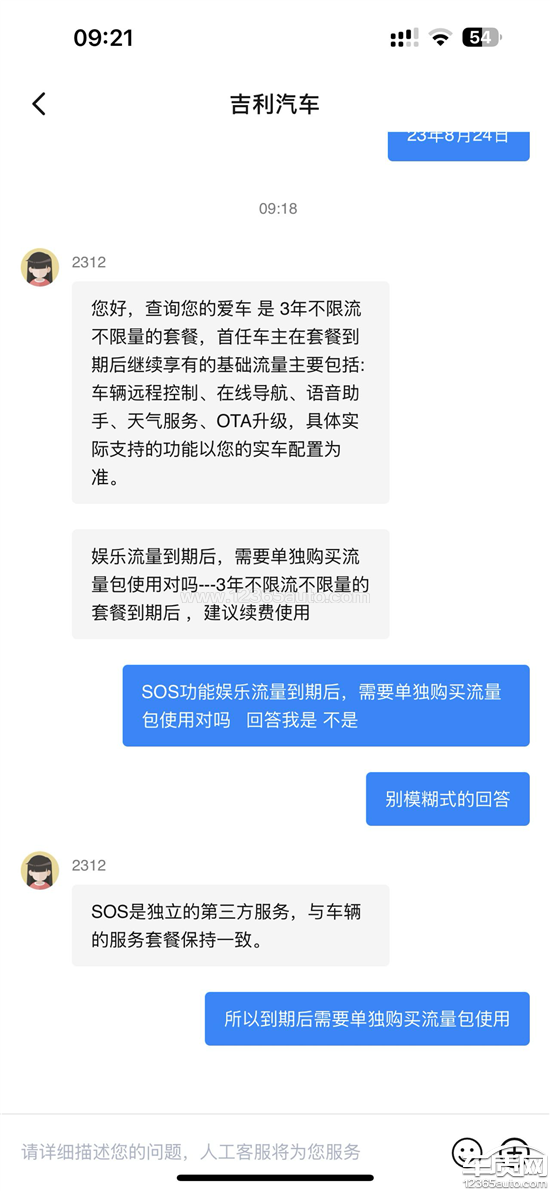 娱乐流量开通时间要比提车认证开通时间早,少了一个月的流量使用。买车时承诺3年内免娱乐流量,包括在车线听歌,在线看视频。基础流量首任车主终身免费,包质括OTA远程升级,语音控制,SOS救援,车机导航等。8月20号吉利发布声明,其中“销售时向用户承诺的包含E-CALL在内的车权益,始终保持一致,不会进行任何变更或减质配”,经过与官方客服沟通,E-CALL(也就是SOS)仍不属于基础流量。现在强烈要求厂家恢复承诺过的sos救援终身免费使用的权益。