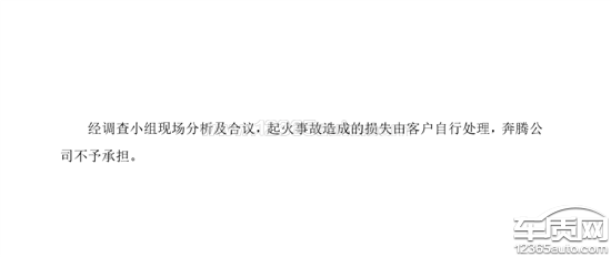 车辆在行驶中自燃起火,至烧毁报废,消防部门鉴定为电气故障起火,奔腾厂家对残骸检验说词是不排除保养不当机油滤清器未紧固和残留织物引发火灾风险,不予赔偿,客户自行承担!我希望厂家尊重消防部门鉴定结果,给予合宜赔偿!