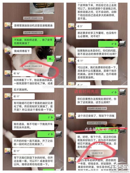 事情的经过是2023年的时候那个厂家招回这款车,然后叫我们回去免费放一个正时皮带,然后换了以后我们也没有看,我们正常的人是不会趴在那个地上去看那个动力漏不漏油的,后面的时候我们在这里看车的时候,然后人家就告诉我们那个维修师傅就告诉我们,他说你的动力漏油,打开那个盖全是油,然后我们问那个4s店,4s店的工作人员,他说是他们的问题,他们会负责的,但是后面的时候嗯叫他帮我们看的时候多次约他都不予以处理。然后现在我们的车在广东省然后我们买车是是在湖南永州的4s店,然后现在一直不予以处理售后,他说我们已经过了保修期,当时反馈问题的时候还拍了照给他,但是他一直没有处理现在导致超出了10万km,然后超出了6年,请帮我处理一下这个问题。嗯,车已经坏了,有一个礼拜了,我投诉到厂家,厂家也一直没有给我正确的回复,他要我们把车拖回永州去修去看,他是这样说的,而且他只出手工费,配件的钱还要我们自己买,我们要求他在我们现在车坏的那个当地的4s店修,行不行?