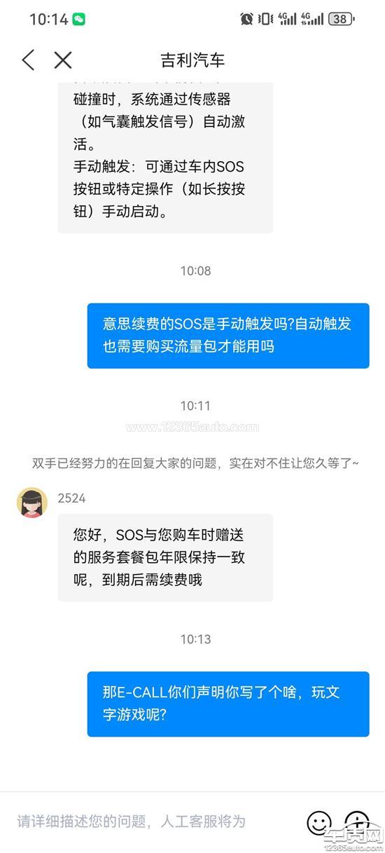 吉利汽车厂家回复:您的信息我们已经收到,感谢您对吉利汽车的信任与支持。吉利汽车在不同时期推出的智能网联车型,因市场定位、价格及配置存在差异,对应的用户权益方案会有所不同。但需明确的是,销售时向用户承诺的包含E-CALL在内的权益,始终保持一致,不会进行任何变更或减配。衷心感谢全球超1800万用户的信任与支持。我们将始终秉持“用户至上”的理念,持续努力,为每一位用户打造更智能、更绿色、更便捷的出行体验。