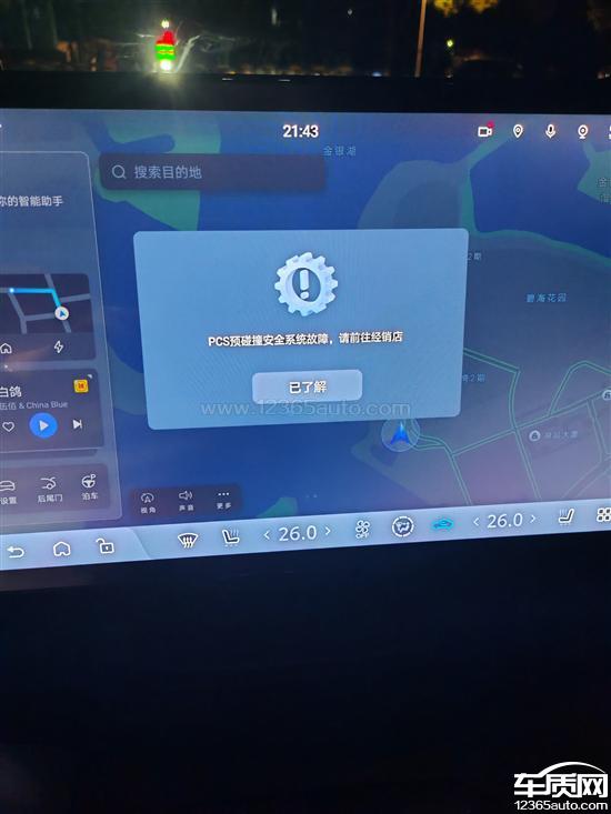 先是PCS预碰撞安全系统报警,接着自动泊车无法使用,360影像有部分黑影,智驾所有功能无法打开。