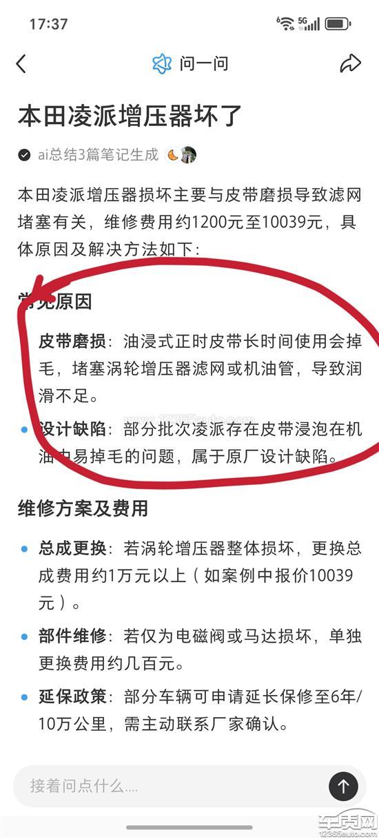 2018年11月购买广汽本田2019款凌派车型,于本月14日仪表盘显示发动机故障,随后立即开去广汽本田瑞洋4s店被告知涡轮增压坏了,告知维修需要缴纳3000元钱。因为该款车型存在设计缺陷,我买的该批次凌派存在皮带浸泡在机油中易掉毛的问题,属于原厂设计缺陷。这在网上都可以查到是属于原厂设计缺陷,并非是我一人车辆问题,反应该问题车主很多。但广汽本田厂家没有在6年质保期内通知消费者召回车辆进行更换,导致我在使用6年多的情况下发动机出现故障,厂家和4S店以超出期限为由不进行质保。我认为原厂设计问题要求我本人出钱不合理。厂家提前进行召回更换可以避免本次问题,当时直接在路上剧烈抖动熄火差点造成交通事故。